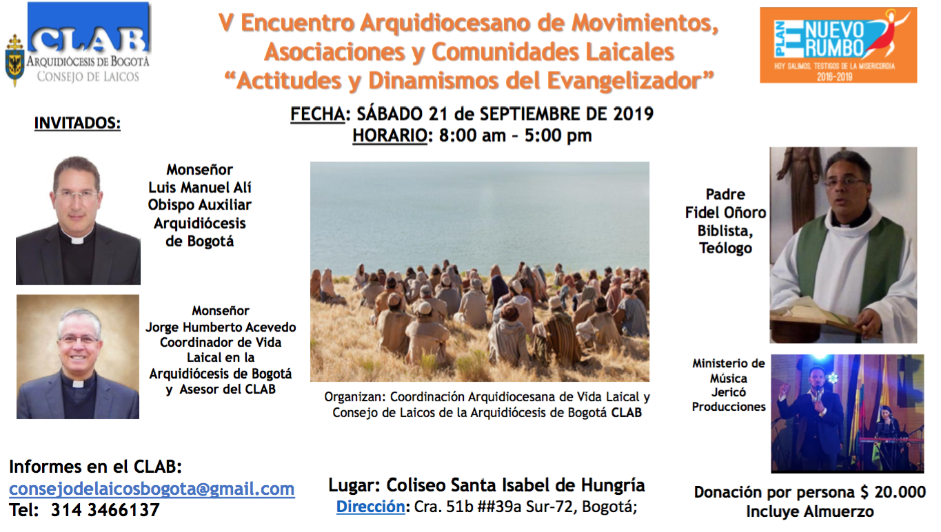 Centro de información Yo quiero Noticias Boletines Eventos Artículos Canonización Mensajes del Señor Cardenal Cartas pastorales Homilías Mensajes La voz del pastor Documentos del Vaticano NoticiasActitudes y dinamismos del evangelizador18 de Septiembre de 2019Encuentro anual de los laicos provenientes de las diferentes asociaciones y movimientos laicales de la arquidiócesis de BogotáDirigido a: Miembros de movimientos y… Like 0 Dislike 0 Noticias relacionadasEste es un ejemplo ✅ Formación introductoria para la actualización de la página web parroquial Unidos en oración