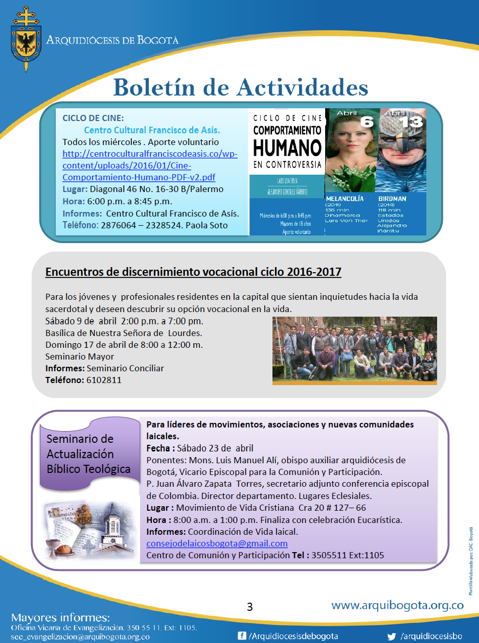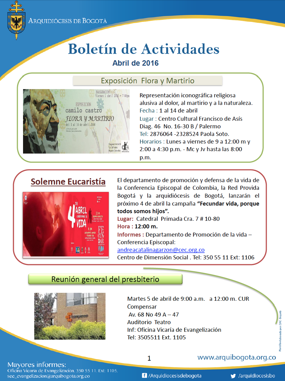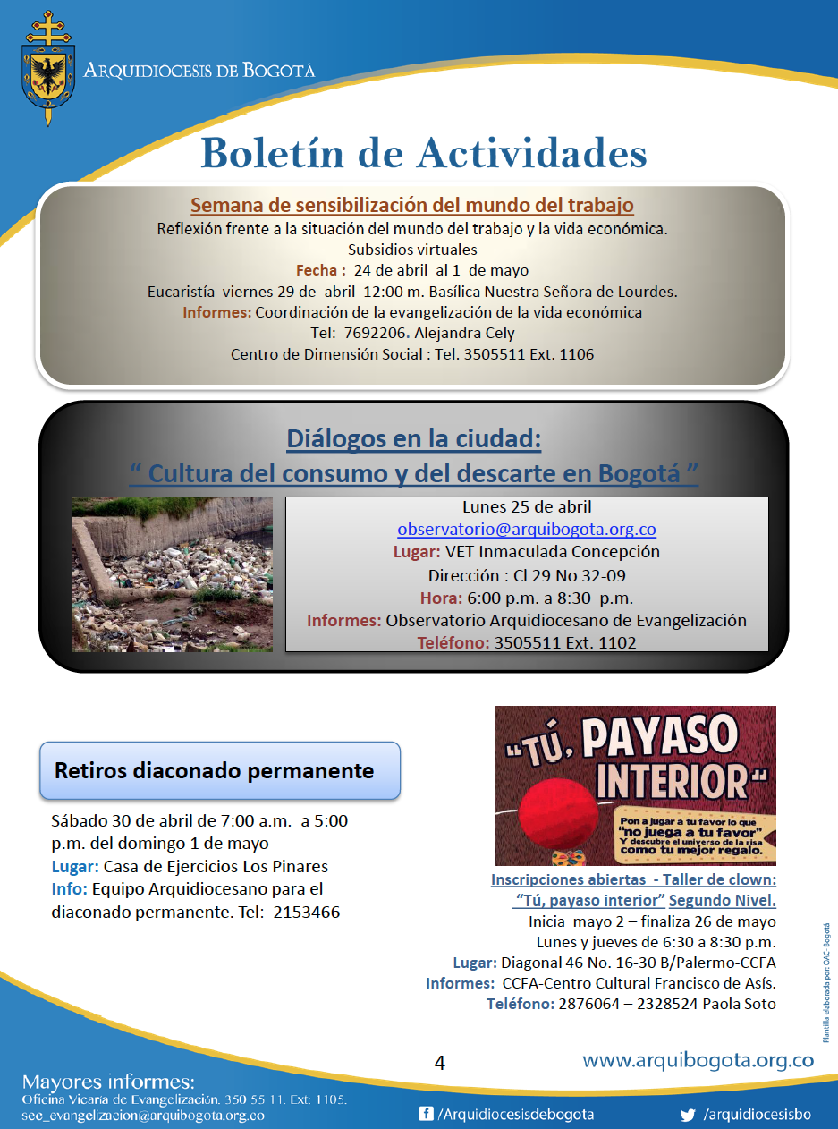 En este boletín encontrarán la información detallada de estas actividades, así como de las actividades ordinarias de nuestra arquidiócesis.