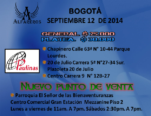 Centro de información Yo quiero Noticias Boletines Eventos Artículos Canonización Mensajes del Señor Cardenal Cartas pastorales Homilías Mensajes La voz del pastor Documentos del Vaticano NoticiasDe Bendición en Bendición, encuentro de oración y alabanza11 de Septiembre de 2014La arquidiócesis de Bogotá. en el marco de las actividades complementarias para el Gran Giro en el plan E, tiene el agrado de invitarlos al concierto con el grupo… Mayor información: en http://www.alfareros.do/index.php?page=agenda Like 0 Dislike 0 Noticias relacionadasEste es un ejemplo ✅ Formación introductoria para la actualización de la página web parroquial Unidos en oración