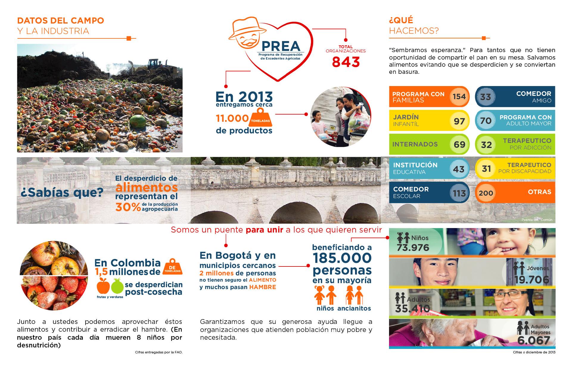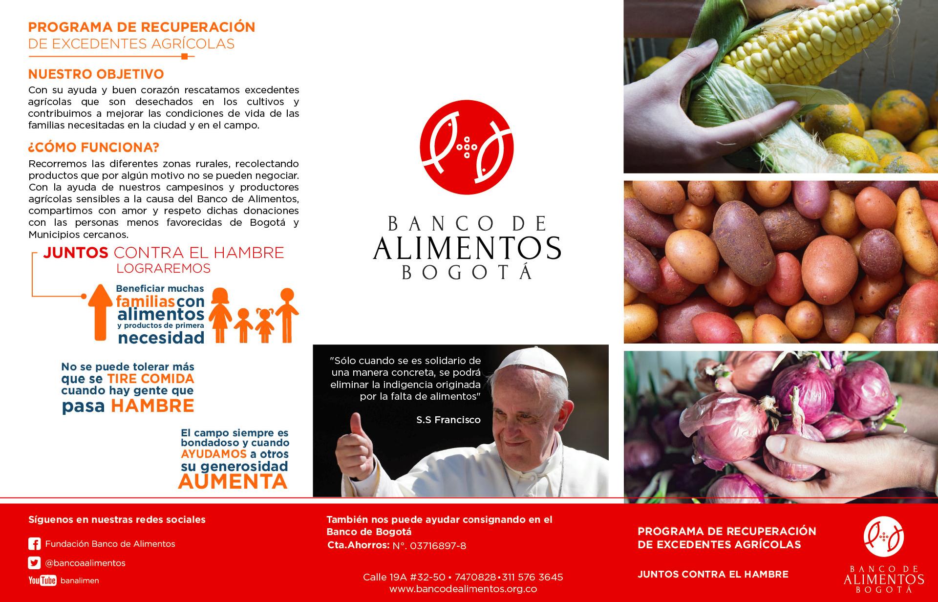 El Banco de Alimentos de la Arquidiócesis de Bogotá quiere salvar los alimentos que se pierden en el campo, a través del Programa de Recuperación de Excedentes Agrícolas (PREA), pretendiendo recorrer diferentes zonas rurales de Cundinamarca, recolectando productos aptos para el consumo humano, con la ayuda de los campesinos y productores agrícolas.