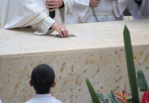 La Eucaristía, como la anterior fue una verdadera catequesis para todos los fieles, quienes entendieron la simbología de cada gesto, como la entrega de las llaves del templo al párroco, la consagración del altar y la colocación de las reliquias, el ungir las columnas del templo, la bendición con el agua bendita, la luz... cada gesto cargado de sentido y explicado por el Arzobispo de manera sencilla y pedagógica.