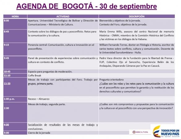 Inscripciones y mayores en incormes en el siguiente link: http://www.eventosmincultura.com/foro-bogota-2015