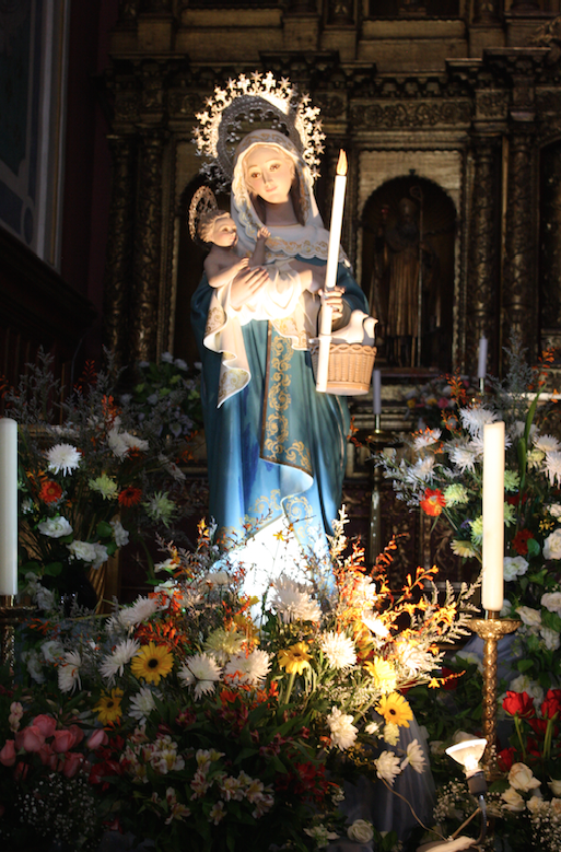 La advocación mariana de la Virgen de la Candelaria o Nuestra Señora de la Candelaria tiene su origen en la ciudad de Tenerife (Islas Canarias) en España. Cuenta la tradición que la Virgen se apareció en 1392 a dos aborígenes “guanches” que se encontraban pastoreando su rebaño. Ellos al llegar a la entrada de una cueva, vieron que el ganado no avanzaba.