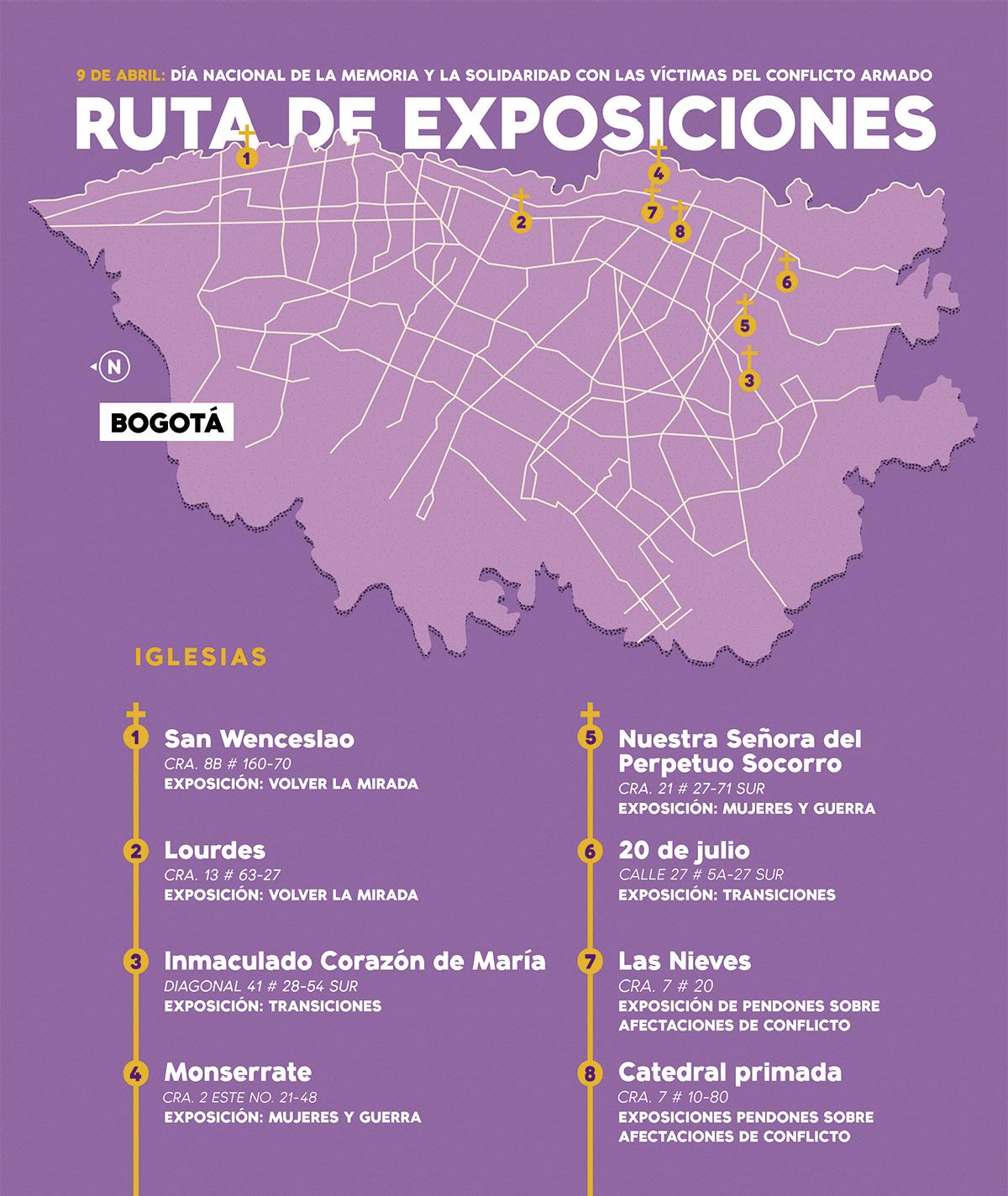 Además, en cinco de los más concurridos templos se presentarán las siguientes exposiciones del Centro Nacional de Memoria Histórica: