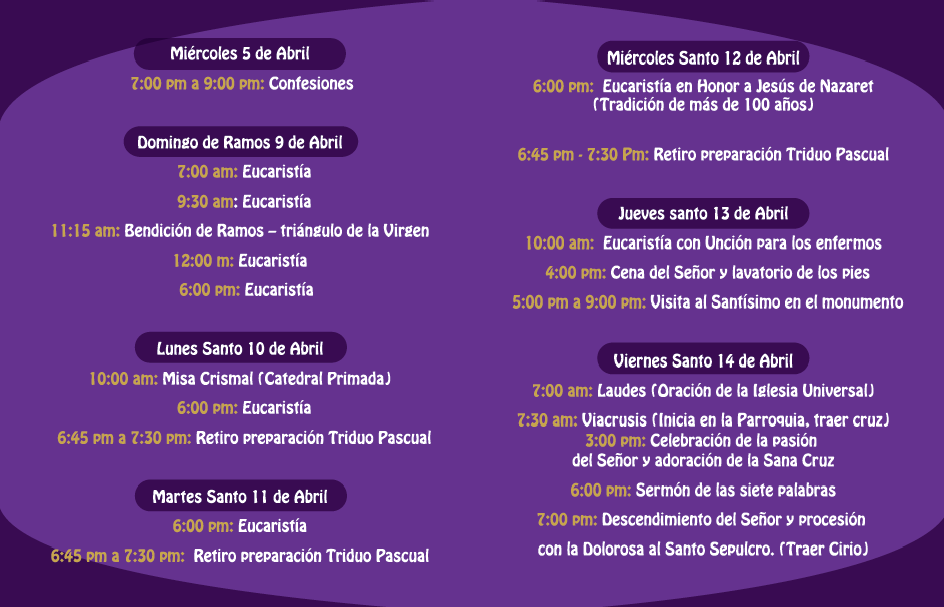 A continuación compartimos algunas programaciones para la Semana Santa.