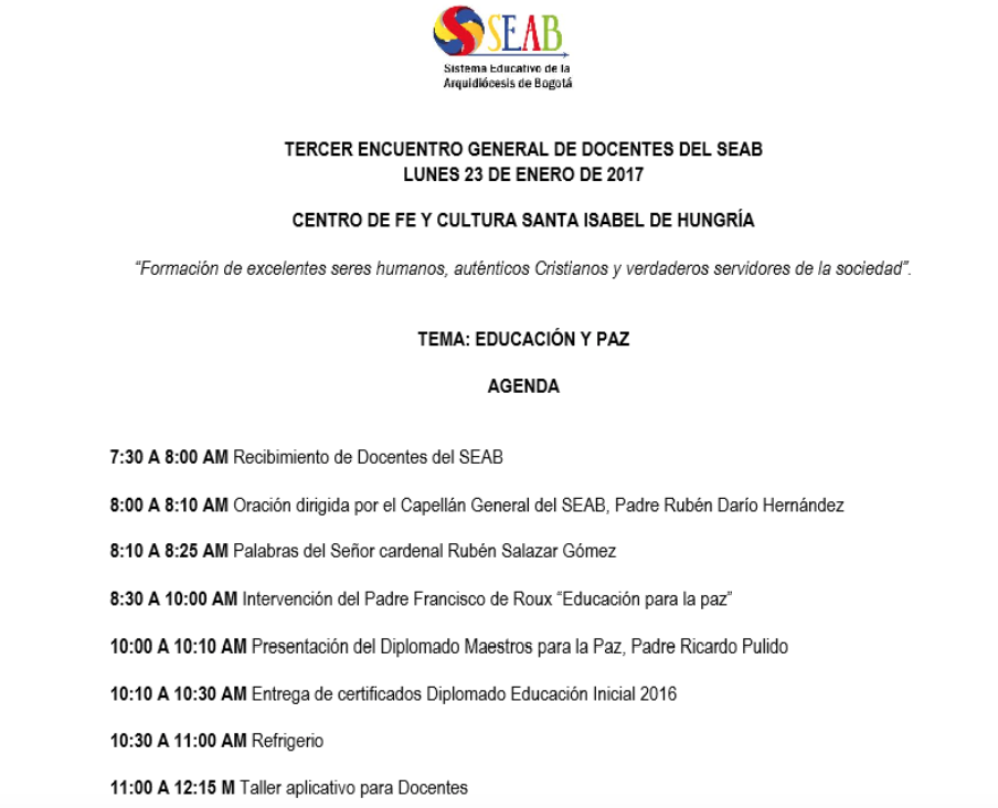Centro de información Yo quiero Noticias Boletines Eventos Artículos Canonización Mensajes del Señor Cardenal Cartas pastorales Homilías Mensajes La voz del pastor Documentos del Vaticano NoticiasTercer encuentro general de docentes SEAB20 de Enero de 2017 Like 0 Dislike 0 Noticias relacionadasEste es un ejemplo ✅ Formación introductoria para la actualización de la página web parroquial Unidos en oración