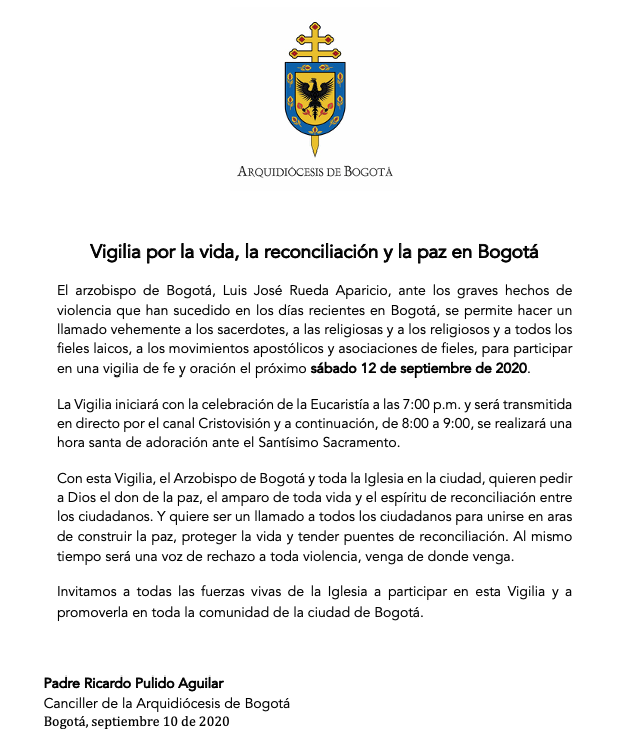 Centro de información Yo quiero Noticias Boletines Eventos Artículos Canonización Mensajes del Señor Cardenal Cartas pastorales Homilías Mensajes La voz del pastor Documentos del Vaticano NoticiasVigilia por la vida, la reconciliación y la paz en Bogotá12 de Septiembre de 2020 Like 0 Dislike 0 Noticias relacionadasEste es un ejemplo ✅ Formación introductoria para la actualización de la página web parroquial Unidos en oración